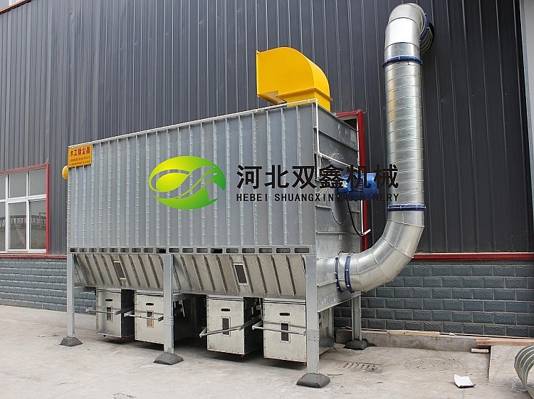 木工布袋除尘器主要由灰斗、过滤室、净气室、支架、提升阀、喷吹清灰装置等部分组成。工作时,含尘气体由风道进入灰斗,大颗粒的粉尘直接落入灰斗底部,较小的粉尘随气流转折向上进入过滤室,并被阻留在滤袋外表面,净化了的气体进入袋内,并经袋口和净气室进入出风管,由排风口排出。随着过滤的不断进行,滤袋外表面的粉尘不断增加,设备阻力随之上升。当设备阻力上升到指定值时,应进行清灰操作,除去滤袋表面的积灰。
